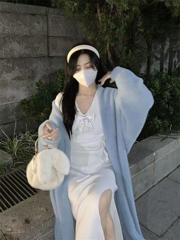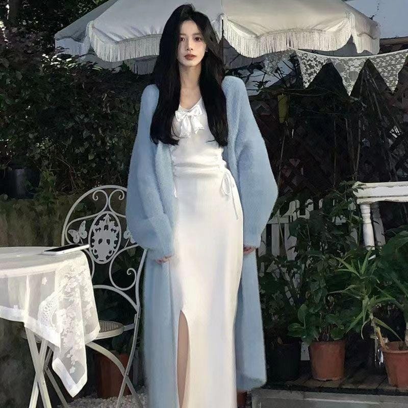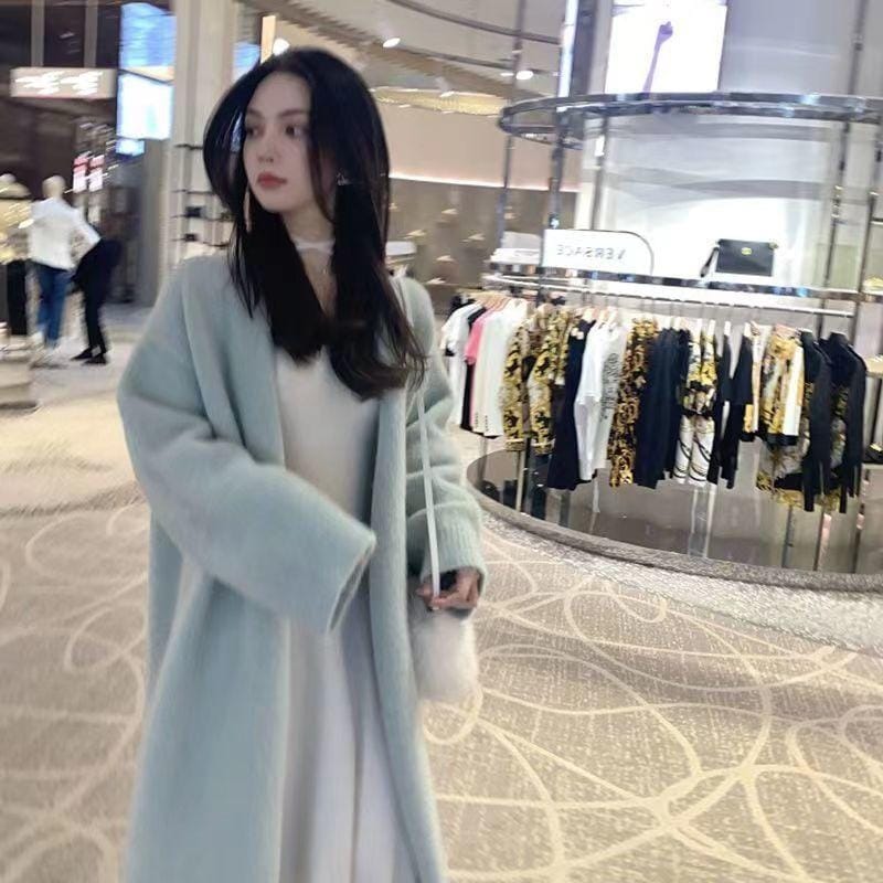 Women's Long Wool Cardigan Coat - Elegant and Plain Design